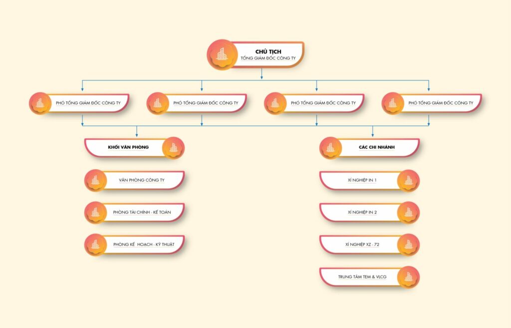 • Các Phó Tổng Giám đốc: Giúp việc Tổng Giám đốc, chịu trách nhiệm điều hành trực tiếp các Khối/Lĩnh vực được phân công (In ấn, Công nghệ, Thương mại, Đào tạo…).